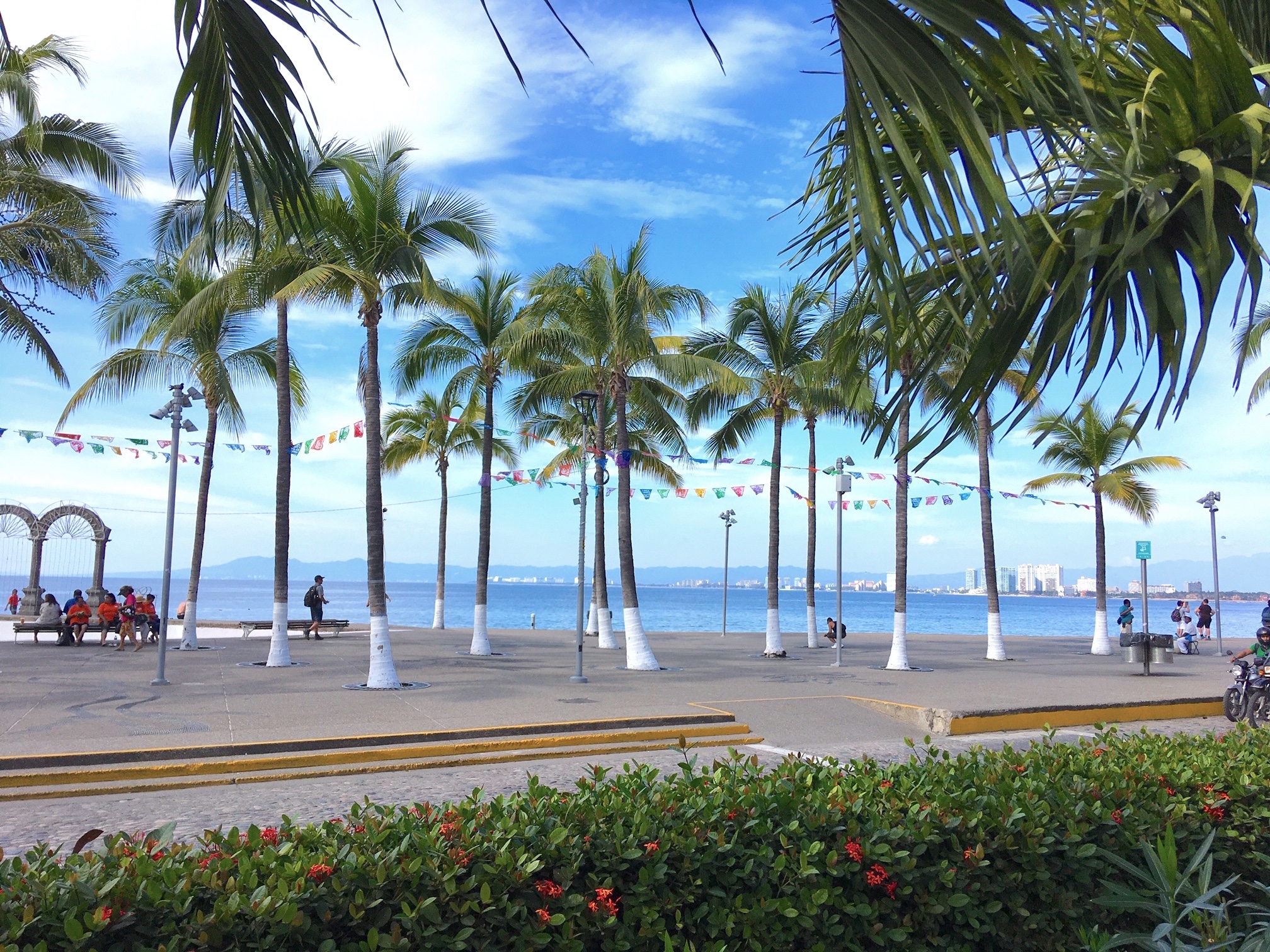 One of Vallarta's best known attractions is the beautiful Malecón Boardwalk along the seaside. It starts midtown and continues for quite a few blocks, offerning expansive views of Banderas Bay, its surrounding mountains and some distant new developments in Nuevo Vallarta. It is a lovely leisurely stroll after a good meal.