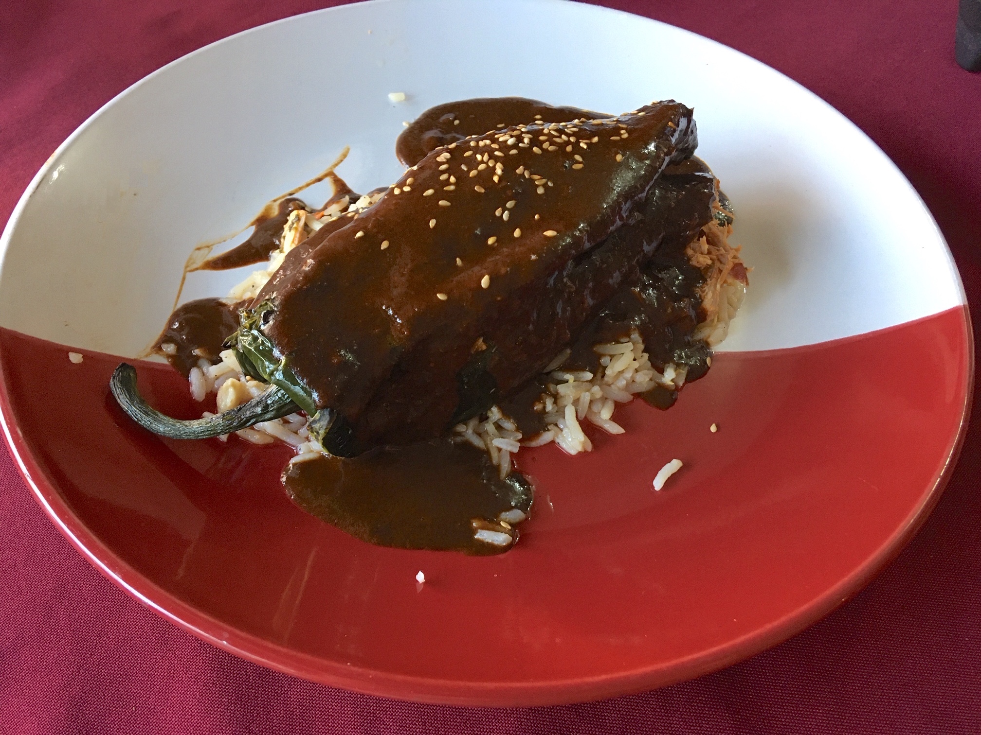 There is no shortage of dining choices in town. By night the beach turns into one continuous dinner party with tables perched straight into the sand, complete with tikka torches and freelancing musicians ready to entertain you with Mexican songs. The options off the beach are equally interesting if not more diverse. We enjoyed a delicious mole at El Mole de Jovita where the sauce was so good we asked for a second serving of just the mole itself. To my own surprise I enjoyed its distinct chocolate flavor, which worked well with notes of prunes and spices. Pictured here is a stuffed poblano pepper on a bed of rice.